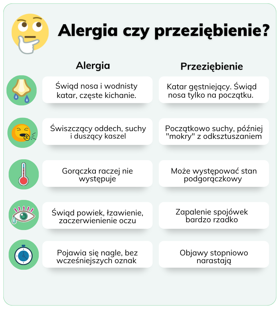 Podstawowymi objawami, które skłaniają nas do podejrzewania alergii są świąd spojówek oraz ich zaczerwienienie, kichanie, uporczywy katar, częste zapalenia zatok czy nawracające infekcje dróg oddechowych. Innym rodzajem alergii są alergie pokarmowe, którym towarzyszy np. wysypka, pokrzywka, wypryski ale też problemy takie jak wzdęcia, zaparcia, biegunki. Dowiedz się, jak prawidłowo wykryć alergię i tym samym uwolnić się od tych dolegliwości.