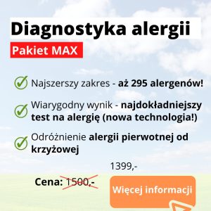 - Diagnostyka alergii MAX – test molekularny na 295 alergenów (najszerszy!)