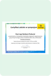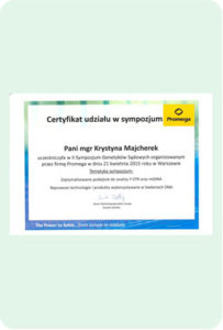 Pracownicy testDNA Laboratorium Sp. z o.o. cały czas poszerzają swoją wiedzę i umiejętności. Regularnie uczestniczą w szkoleniach – zarówno tych organizowanych w kraju jak i za granicą. Udział w sympozjach i szkoleniach pozwala nam nieustannie poszerzać swoją wiedzę i rozwijać umiejętności zawodowe pod okiem wybitnych ekspertów, bo przecież genetyka to dziedzina, która stale ewoluuje.