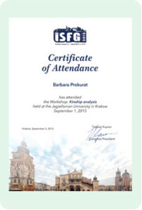 - Spotkanie Polskojęzycznej Grupy Roboczej przy ISFG dot. Standardów Opiniowania w zakresie Genetyki Sądowej