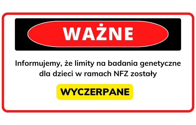 WAŻNE: INFORMUJEMY, ŻE LIMITY NA BADANIA GEETYCZNE DLA DZIECI W RAMACH NFZ ZOSTAŁY WYCZERPANE