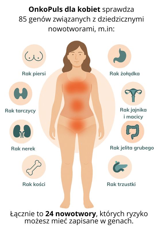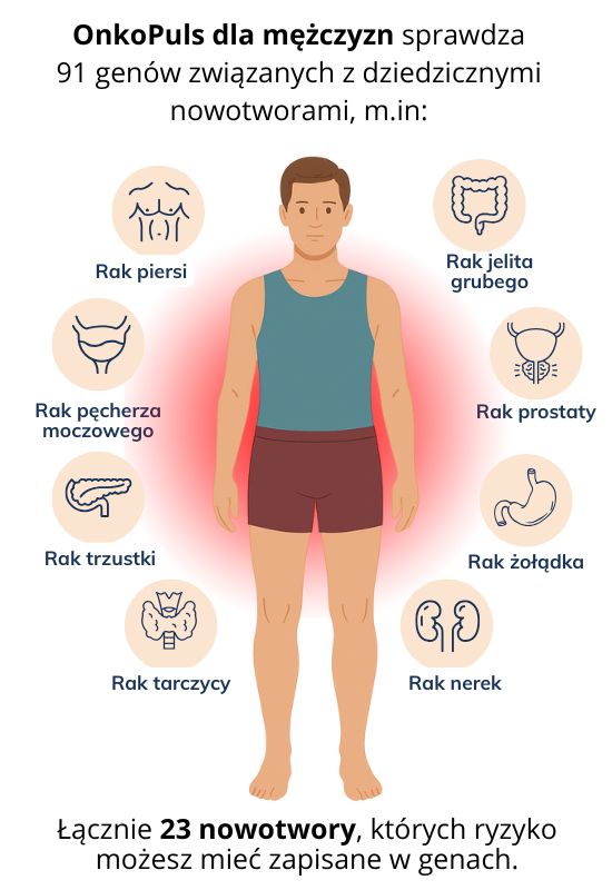 Zadbaj o swoje zdrowie z testem genetycznym OnkoPuls. Sprawdź, czy masz predyspozycje do chorób nowotworowych, dzięki analizie Twoich genów. Test pomoże Ci poznać ryzyko onkologiczne i wskazać, jakie działania profilaktyczne warto podjąć. Dowiesz się, które nowotwory mogą być dziedziczne w Twojej rodzinie i co zrobić, by lepiej zadbać o zdrowie.
