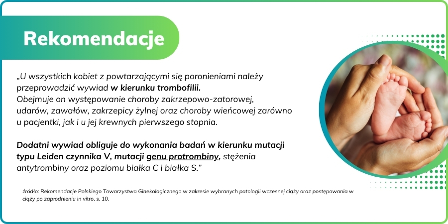 - wdrożyć leczenie (np. heparynę przy nieprawidłowym wyniku trombofilii),