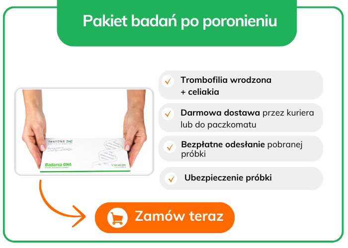 Jeśli właśnie szukasz odpowiedzi, które pozwolą Ci zrozumieć i odzyskać nadzieję – jesteś w dobrym miejscu. Pakiet badań po poronieniu został stworzony z myślą o kobietach takich jak Ty: które chcą wiedzieć, co mogło się wydarzyć, i chcą zrobić coś, co pomoże w przyszłości. To kompleksowa diagnostyka genetyczna, która obejmuje badanie trombofilii wrodzonej oraz badanie w kierunku celiakii – dwóch czynników często związanych z poronieniami nawracającymi oraz wczesną utratą ciąży.