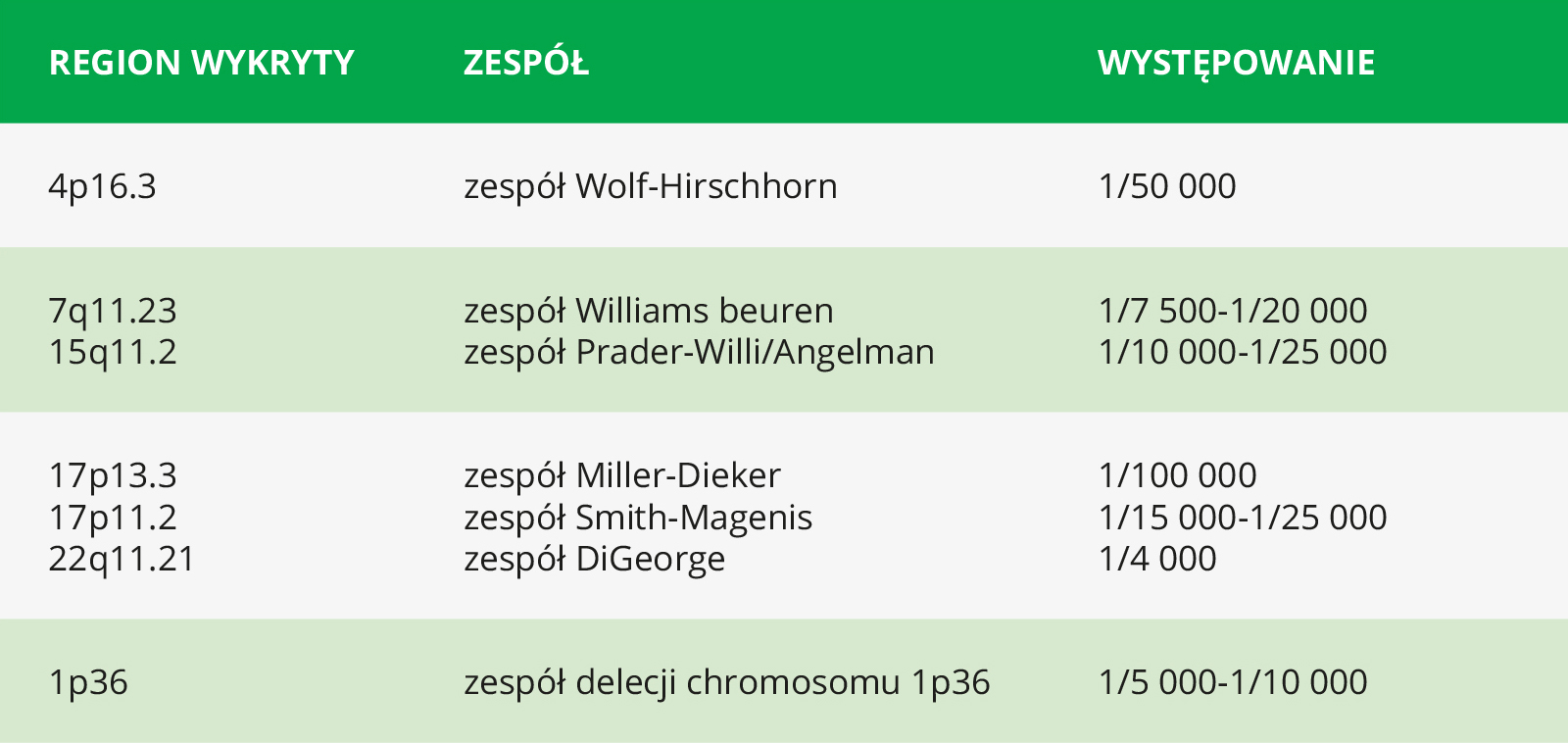 - 92 delecje / duplikacje. Choć mikrodelecje uznawane są za rzadkie, to prawdopodobieństwo ich wystąpienia u dziecka kobiety poniżej 40. roku życia jest nawet większe niż ma to miejsce przy zespole Downa.