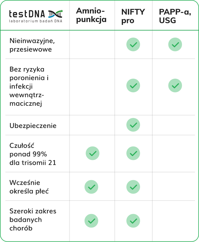 Dzięki temu prawidłowy wynik NIFTY pro i FeliaTest nie wymaga już potwierdzenia badaniami inwazyjnymi – można uniknąć amniopunkcji.