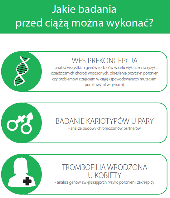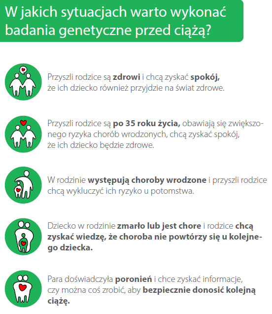 - pierwszy etap diagnostyki genetycznej pary, jeśli wcześniej wystąpiły trudności.
