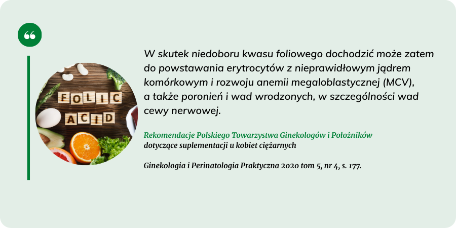 [1]Suplementacja folianów w okresie przedkoncepcyjnym, w ciąży i połogu. Rekomendacje Polskiego Towarzystwa Ginekologów i Położników. Ginekologia i Perinatologia Praktyczna, s. 211.