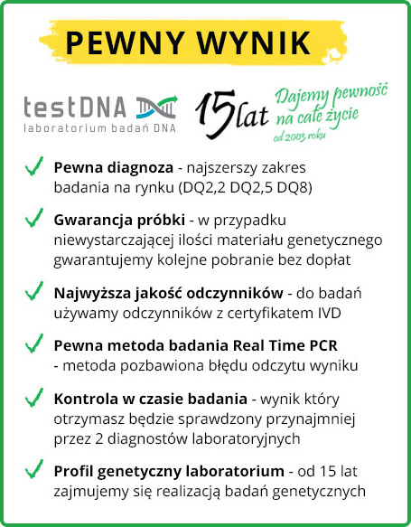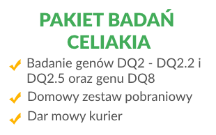 - Trwała nietolerancja glutenu (celiakia) * Analiza hapotypów DQ2,2 DQ2,5 DQ8 (a i b)