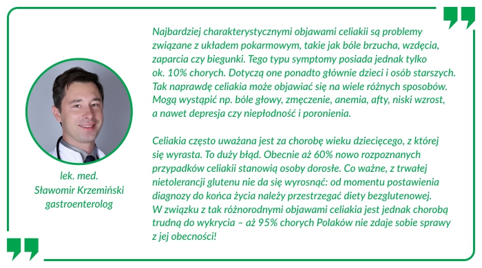 Dieta bezglutenowa zalecana jest tylko w przypadku Pacjentów, u których badania stwierdziły obecność choroby.