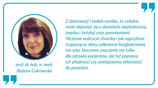 W ostatnich czterech dekadach pojawiło się wiele doniesień naukowych łączących problemy z płodnością z nieleczoną celiakią. Naukowcy sugerują wręcz wprowadzenie badań przesiewowych w kierunku celiakii u wszystkich par z niewyjaśnioną bezpłodnością. Stwierdzono bowiem, że wprowadzenie diety bezglutenowej u osób z trwałą nietolerancją glutenu daje szansę na szybkie poprawienie płodności i szczęśliwie donoszoną ciążę.