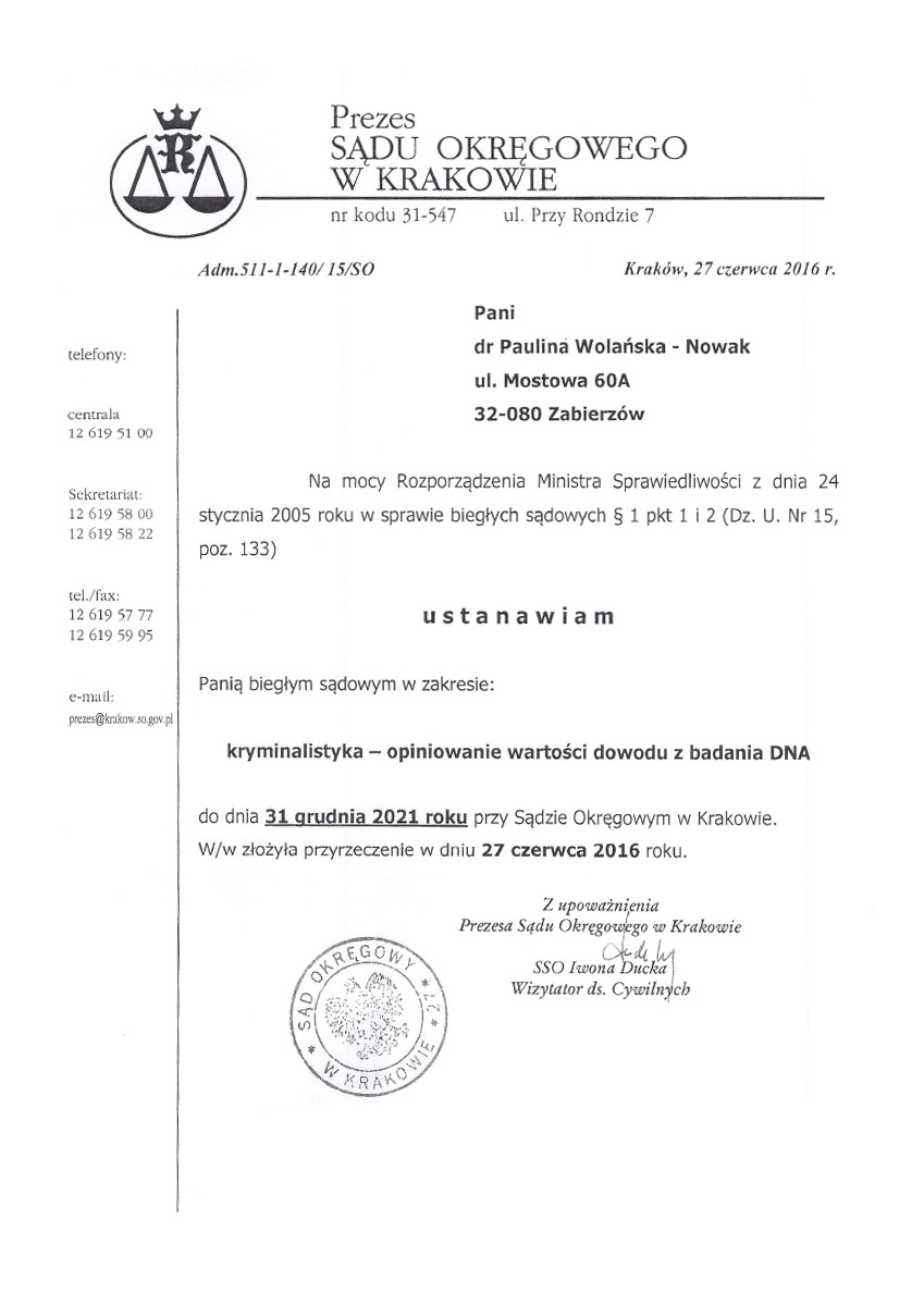 - Wolańska-Nowak, W. Branicki, T. Kupiec, Application of Gene Print Power Plex 16 System in analysing of forensic mix stains, Z Zagadnień Nauk Sądowych, (2001), z.XLVI,