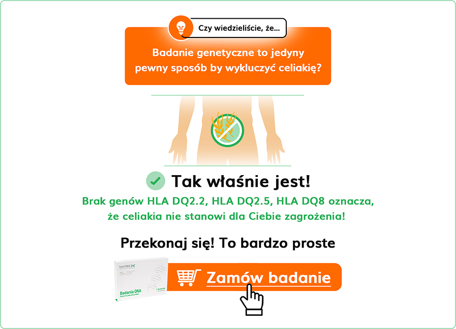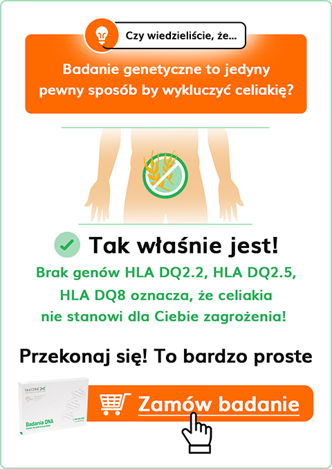 Uważasz, że gluten nie jest dla Ciebie, źle się po nim czujesz? Przebadaj się w kierunku celiakii, wykonując test genetyczny. Daje on całkowicie pewny wynik, więc dowiesz się, czy choroba ta może u Ciebie wystąpić czy nigdy się u Ciebie nie pojawi.