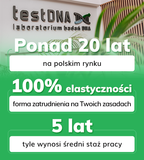 Treści na tej stronie zostały przygotowane przez zespół specjalistów laboratorium testDNA, które od ponad 20 lat zajmuje się badaniami DNA w Polsce. Naszą misją jest dostarczanie pacjentom rzetelnych informacji oraz nowoczesnych rozwiązań diagnostycznych.