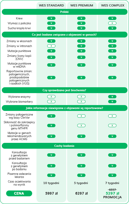 👉Badania WES PREMIUM oraz WES COMPLEX to badanie WES o rozszerzonym zakresie. Oprócz zmian w eksonach sprawdza dodatkowo zmiany w intronach.