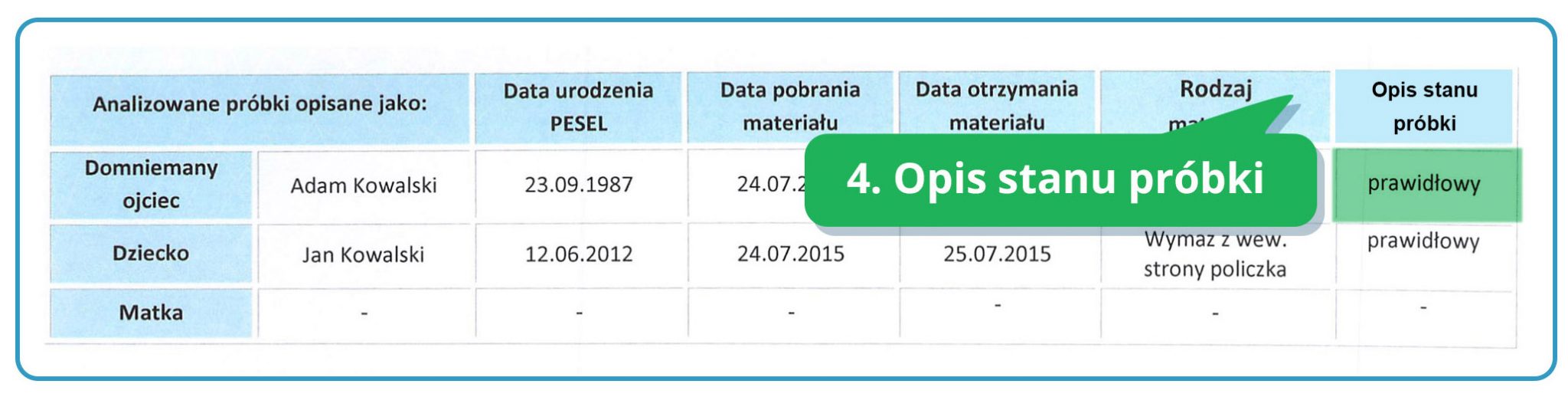 Jakie informacje będzie zawierał Państwa wynik testu na ojcostwo?