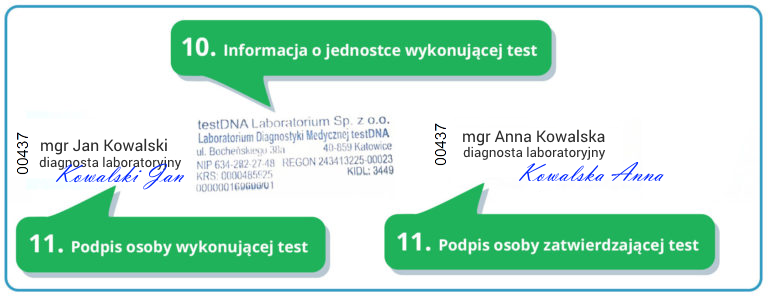 Do wyniku dołączone są też materiały informacyjne, które pokazują, w jaki sposób prawidłowo odczytać wynik oraz jaką metodą wykonywany był test.