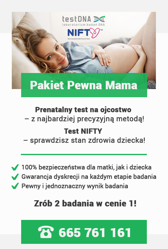 Z ustaleniem ojcostwa nie musimy czekać do porodu.Test genetyczny z krwi matki możemy wykonać już od 8 tygodnia ciąży. Daje on taki sam wynik jak test na ojcostwo wykonany po narodzinach dziecka. Dodatkowo w pakiecie Pewna Mama możemy wykonać także badanie prenatalne NIFTY, dzięki któremu sprawdzisz stan zdrowia swojego malucha.