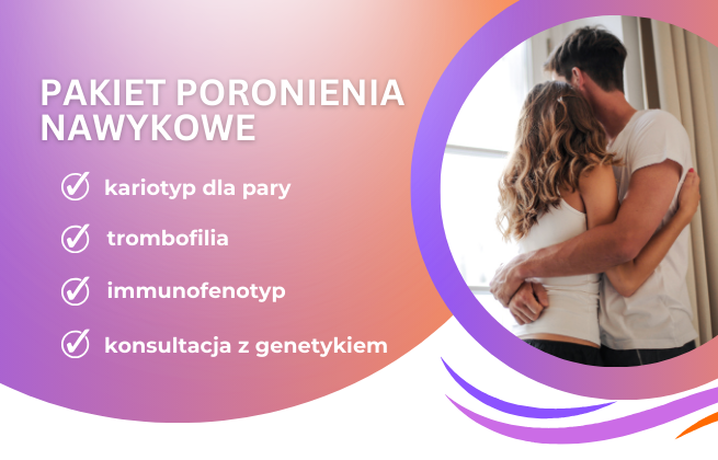 Cena Pakietu Poronienia Nawykowe to 1777 zł. Obejmuje ona badanie kariotypu u Ciebie i partnera, trombofilii wrodzonej i immunofenotypu (u kobiety). Wynik badania otrzymujecie Państwo w zależności od badania, czyli: