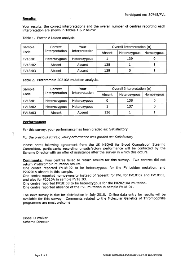 Firma testDNA Laboratorium Sp. z o.o. wzięła udział w programie UK NEQAS (United Kingdom National External Quality Assessment Scheme for Molecular Genetics). Jego celem jest zewnętrzna kontrola jakości badań genetycznych czynnika V Leiden oraz mutacji genu protrombiny.