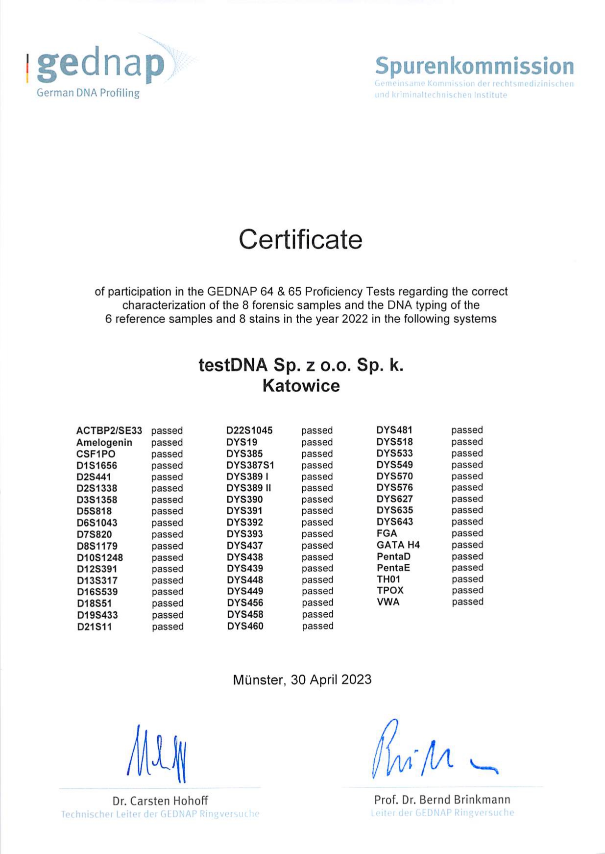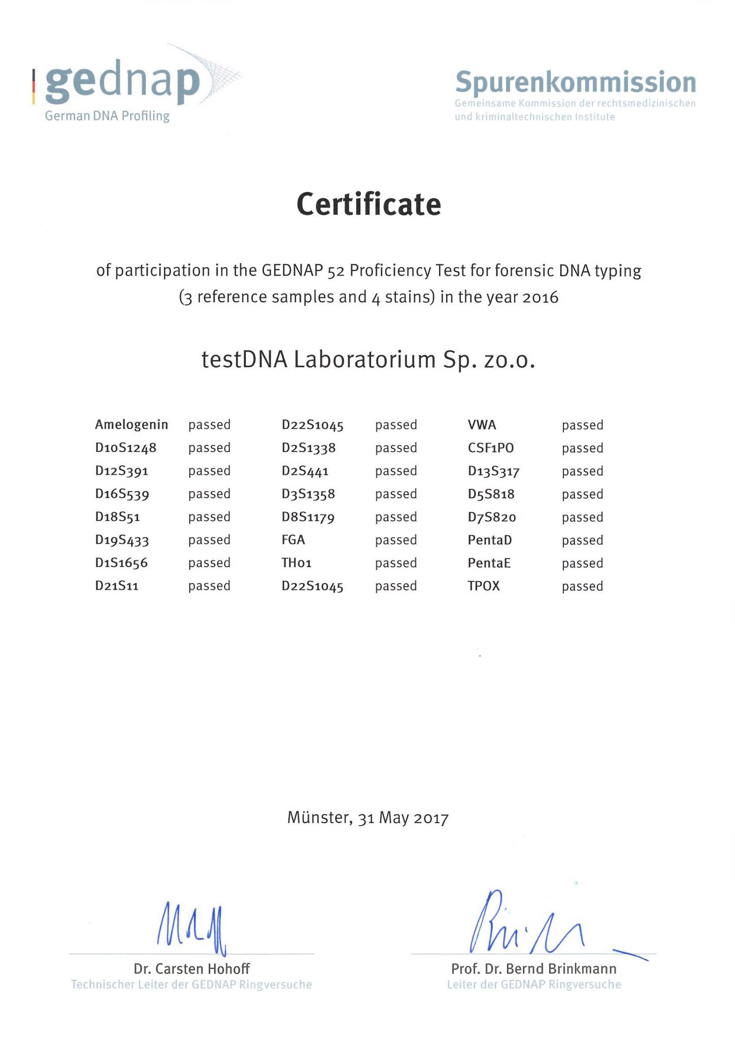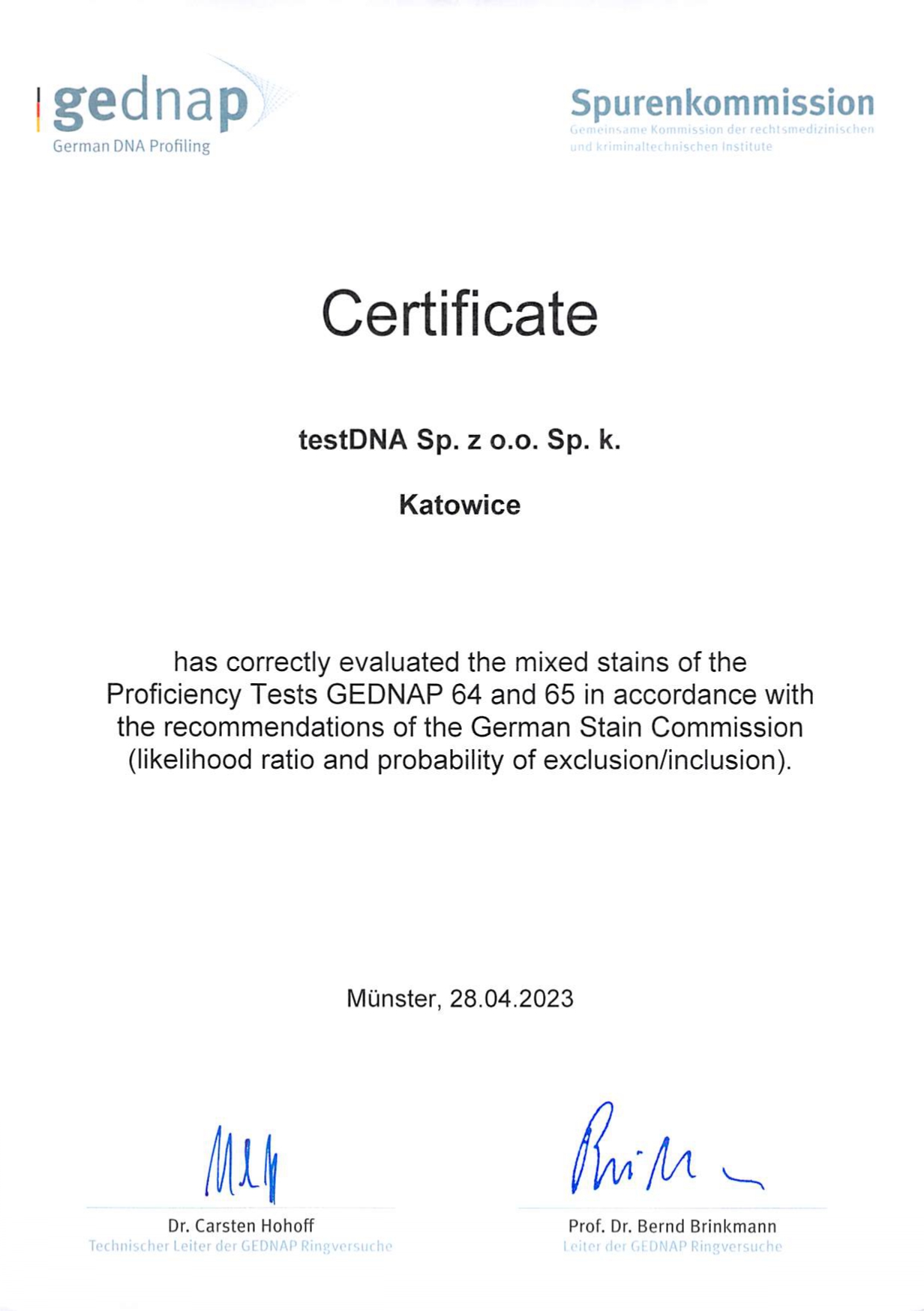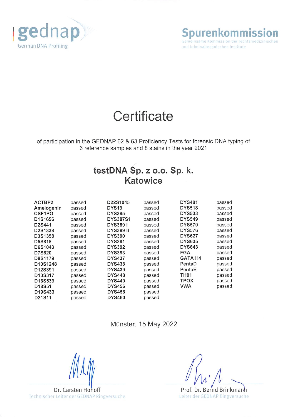 • Gwarantujemy wysoką jakość – testDNA Sp. z o.o. Sp. k. posiada liczne certyfikaty, regularnie poddaje się zewnętrznym kontrolom jakości badań DNA. TestDNA to laboratorium badawcze akredytowane przez Polskie Centrum Akredytacji*. Ponadto jako jedyne prywatne laboratorium w Polsce uzyskaliśmy m.in. 100% zgodność rezultatów w teście na ojcostwo w międzynarodowym programie biegłości CTS (Collaborative Testing Services) z akredytacją ISO/IEC 17043:2010.
