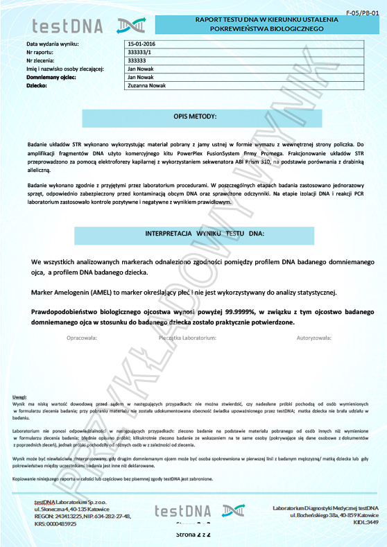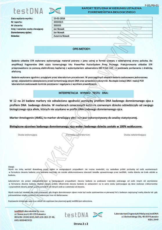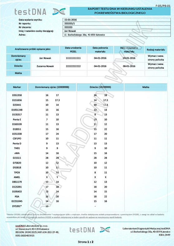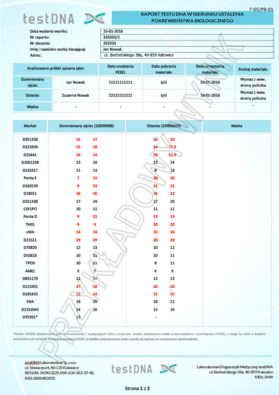 Sprawdź: Jakie informacje będzie zawierał Państwa wynik testu na ojcostwo