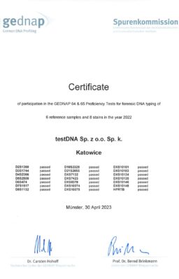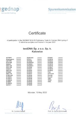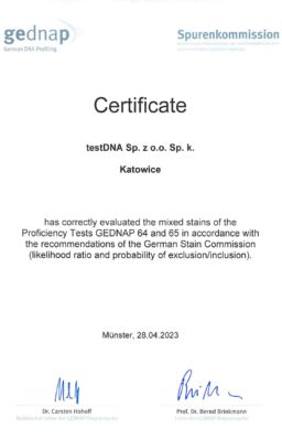 TestDNA to laboratorium akredytowane przez Polskie Centrum Akredytacji. Sądy mogą honorować tylko wyniki badań wykonanych w akredytowanych laboratoriach.