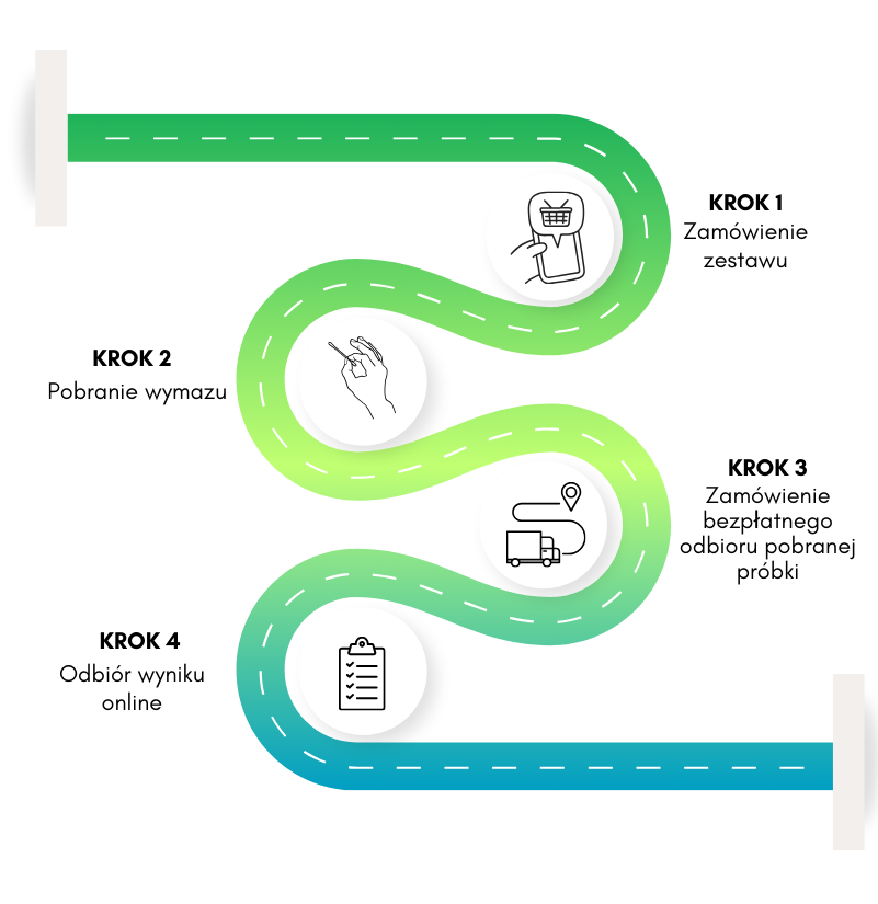 kurier lub paczkomat (próbki pacjent odsyła na swój koszt). Bezpłatna wysyłka również za granicę! - Gwarancja na próbki: brak