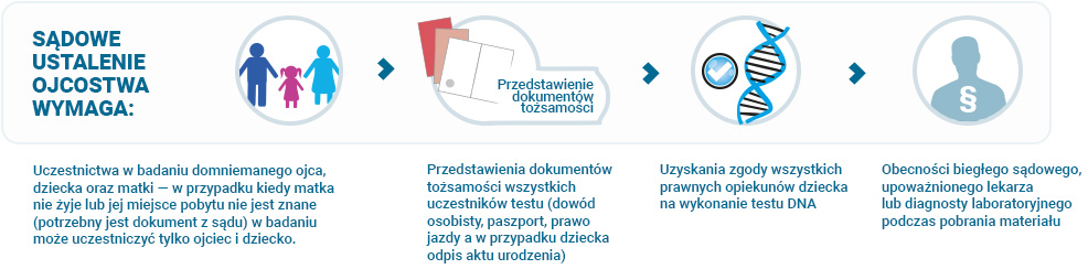 Przy badaniu ojcostwa na 24 markerach DNA, wystarczy, aby w badaniu udział wzięli – domniemany ojciec oraz dziecko. Badanie w takim zakresie pozwala wystawić wiarygodny wynik zgodnie z rekomendacjami Polskiego Towarzystwa Medycyny Sądowej i Kryminologii bez obecności matki w badaniu.