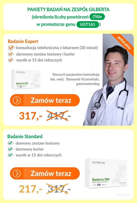 Najprostsza i pewna metoda diagnozy to test genetyczny analizujący genotyp UGT1A1