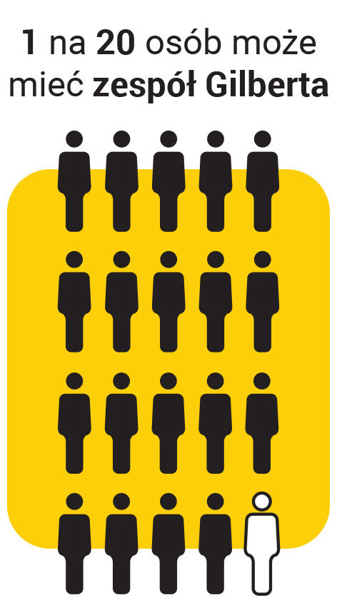 Zespół Gilberta to najczęstsza genetyczna przyczyna podwyższonego poziomu wolnej bilirubiny (żółtego barwnika) [1]. Schorzenie to występuje u co 20 osoby (5-7% populacji) – częściej u mężczyzn, niż u kobiet [2].